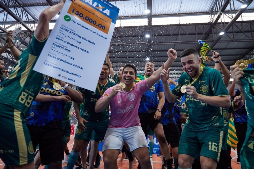 Esse é o Atlético Piauiense comemorando esse domingo histórico, onde ele se tornou o primeiro campeão brasileiro de Futsal do nosso estado.Um jogaço vencido por 5 x 2 contra o Traipu, de Alagoas. Parabéns aos atletas, equipe e torcedores que escreveram mais uma bela página na história do nosso esporte!!!