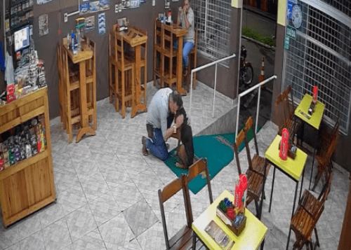 Um caramelo foi filmado por câmera de segurança quando entrou em uma lanchonete, deu com a patinha, pediu, ganhou e retribuiu um abraço de um homem. O fato aconteceu no último dia 16 de dezembro, em Patrocínio, Minas Gerais.