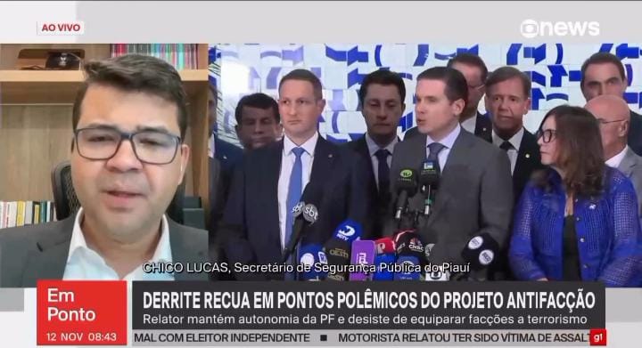 Chico Lucas, secretário de Segurança Pública do Piauí, concedeu entrevista esta manhã de quarta-feira (12), à Globo News, debatendo o soluções e possibilidades para o combate ao Crime Organizado no Brasil.