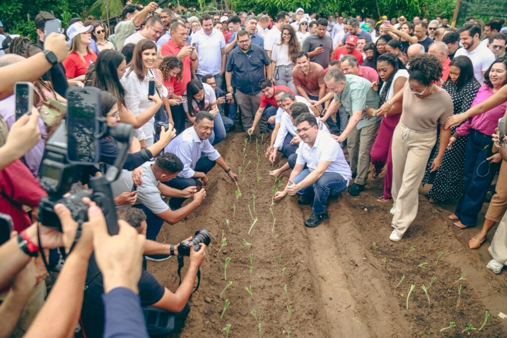 O governador Rafael Fonteles e os ministros do Desenvolvimento e Assistência Social, Família e Combate à Fome (MDS), Wellington Dias, e da Secretaria-Geral da Presidência da República, Guilherme Boulos, estiveram no Quilombo Mimbó, no município de Amarante, nesta quinta-feira (5). A comitiva visitou a construção de uma unidade do Sisteminha, participou da assinatura do Programa Acredita no Primeiro Passo, inaugurou a Sala de Computação — em parceria com o Ministério das Comunicações — e realizou a entrega de alimentos do Programa de Aquisição de Alimentos (PAA).