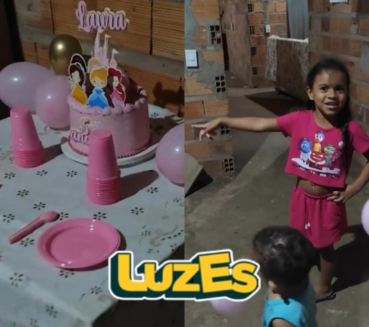 A pequena Laura, carismática e uma verdadeira princesa, não acreditou quando chegou em casa e viu em cima da mesa um bolinho de aniversário de 5 anos com balões e outros enfeites. No vídeo que a mamãe gravou e publicou nas redes sociais é possível ver ela questionando: “é, mãe, é minha? É minha festa, mãe?”.